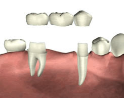 A dental bridge is one or more false teeth called a pontic, which is typically attached each end to a crown on a tooth adjacent to the space.